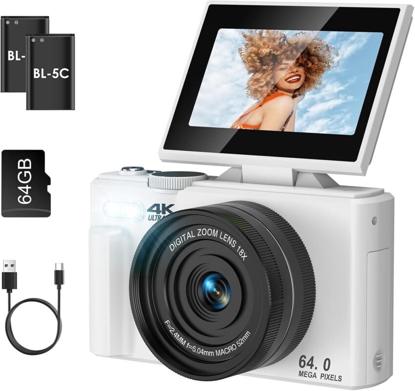 05 Feb كاميرات رقمية LAMA 4K UHD 64MP Digital Camera, 18X Zoom Compact with 64GB Card, Anti-Shake Vlogging with Fill Light, 3″ LCD 180 FILP Screen, Auto Focus for Student Teen, Two Batteries, White Posted by b.bhipksa 2026-02-05 0 Continue reading