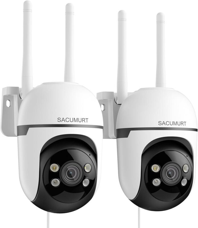 WiFi Security Cameras Wireless Outdoor Wired, Plug-in Outdoor Security Cameras for Home Security, 24/7 Recording, Human Detection, PTZ, 2K HD Color Night Vision, 2.4Ghz WiFi Only, 2-Way Talk, 2 Packs