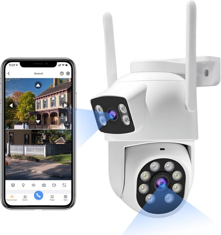 Dual-Lens Wireless Security Camera Outdoor, 2K HD 6MP View, Indoor WiFi Connection, Smart Night Vision, Ai Motion Detection and Tracking, Light and Siren Alarm, 64G SD Card (Included)