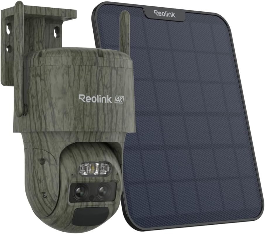 REOLINK 4K Dual Lens 4G LTE Cellular Security Camera, SIM Card Included, Wireless Auto Tracking Trail Camera, 6X Hybrid Zoom, No-Glow IR, Waterproof for Wildlife, TrackMix LTE Trail + Solar Panel 2