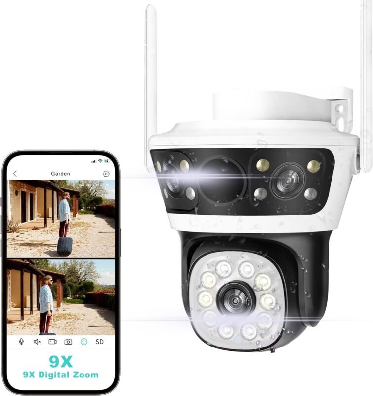 Security Camera Outdoor 2.4G WiFi PTZ Outdoor Camera Dual Lens Home Security Cameras Linkage 360°View 4MP Plug-in Cable Two-Way Talk,AI Detection,Full-Color Night Vision,Auto Tracking,24/7 Recording