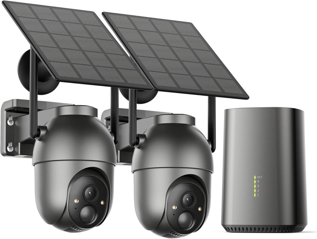 Aume 4MP Security Cameras Outdoor Wireless, No Subscription, 2-Cam Kit, Solar-Powered, Home Security Camera System with 360° Pan & Tilt, Color Night Vision, Easy Setup, 5GHz & 2.4GHz Router Compatible