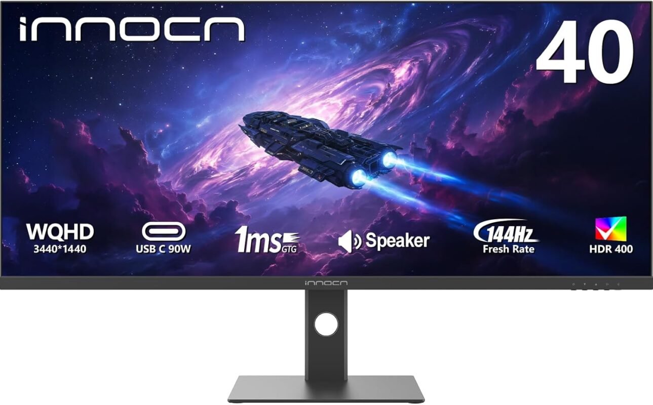 INNOCN 40″ Ultrawide Monitor 3440 x 1440P 144Hz Gaming FreeSync HDR400 21:9 PC Computer IPS Display, Screen Split PIP/PBP for Editing/AI Workflow, USB C 90W, HDMI, DP, Height Adjustable, Black