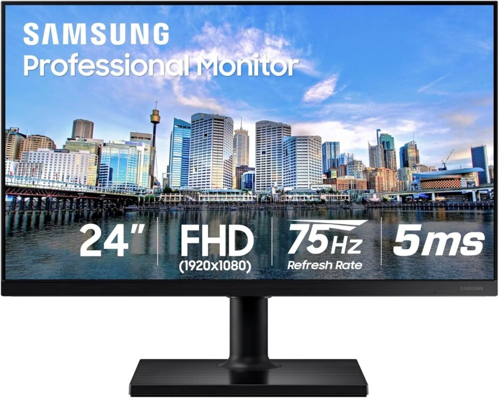 SAMSUNG FT45 Series 24-Inch FHD 1080p Computer Monitor, 75Hz, IPS Panel, HDMI, DisplayPort, USB Hub, Height Adjustable Stand, 3 Yr WRNTY (LF24T454FQNXGO),Black