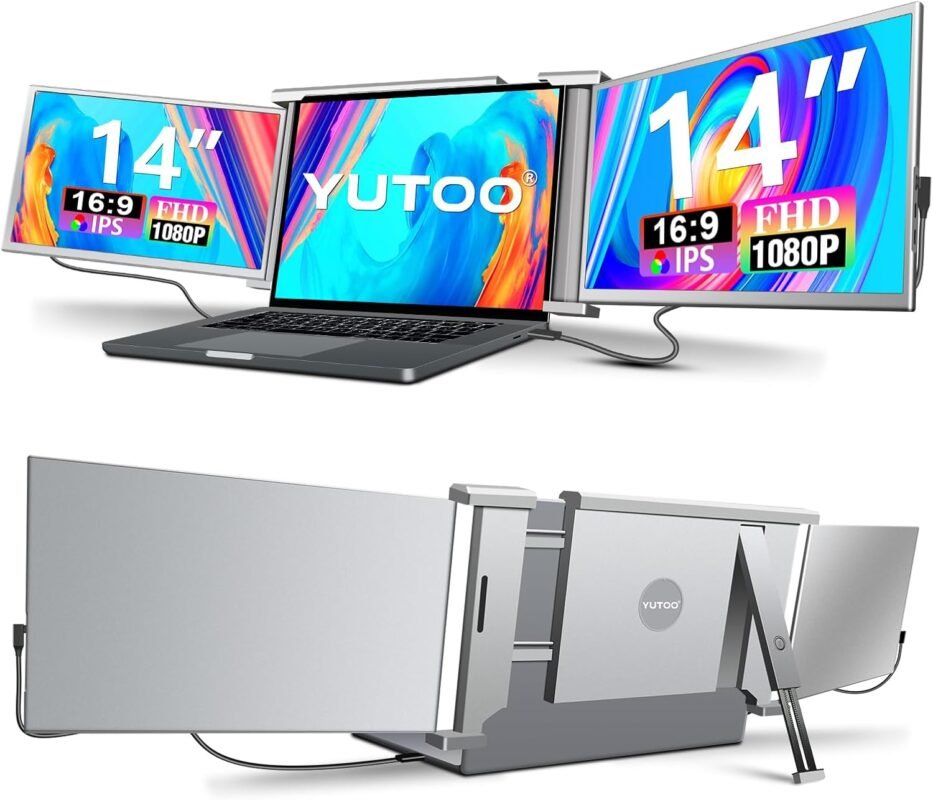 YUTOO Laptop Screen Extender, 14″ Portable Triple Monitor for Laptops 315° Rotate| Plug and Play| 1080P| FHD, Laptop Monitor Extender for 13.5~16.5″ Laptops, HDMI/USB-A/Type-C,for Mac/Wins/Android/Dex