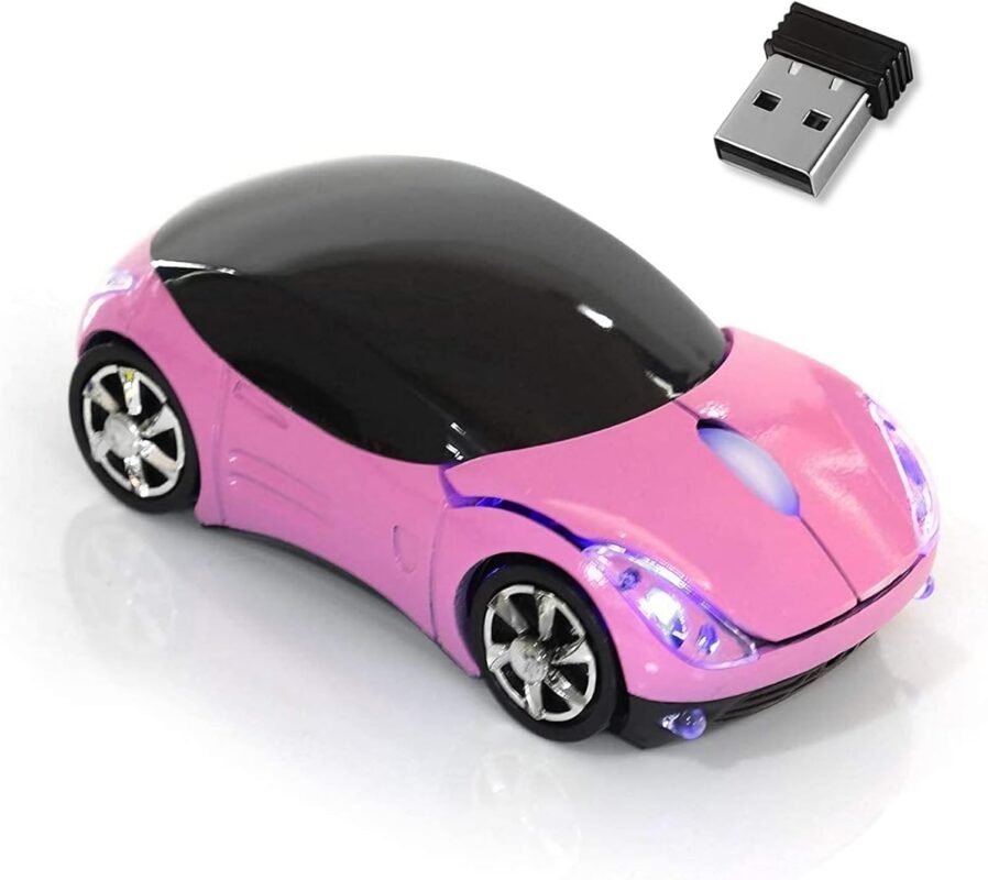 Pink Wireless Car Mouse,1600DPI 2.4G with USB Reciver Car Mouse for Computer Wireless Computer