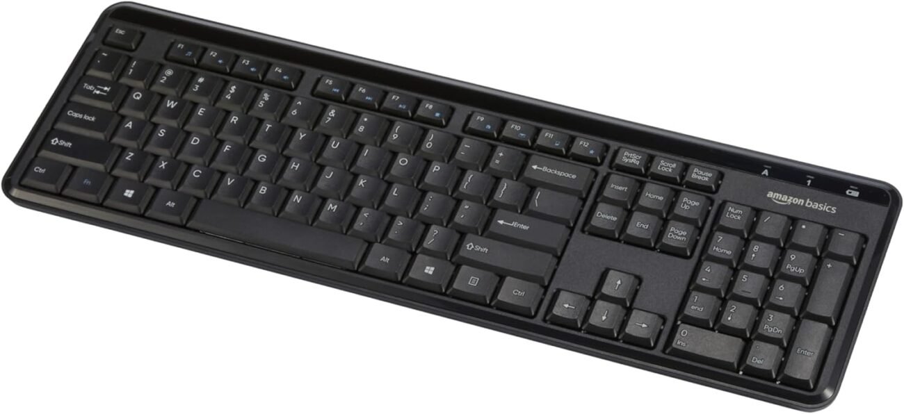 Amazon Basics Modern Wireless Keyboard with Numeric Keypad, Compact US Layout (QWERTY), 2.4GHz,