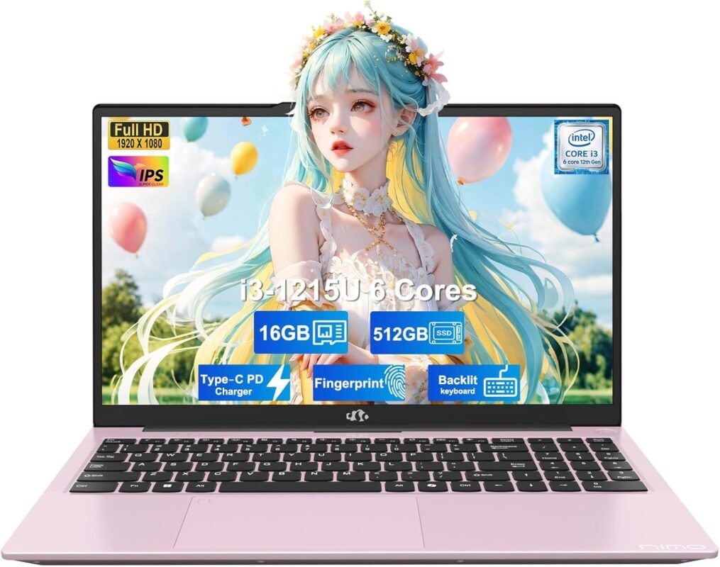 NIMO 15.6″ IPS FHD Student Laptop, Intel 6-Core i3-1215U, 16GB RAM, 512GB SSD (Beats R5 7520U, …