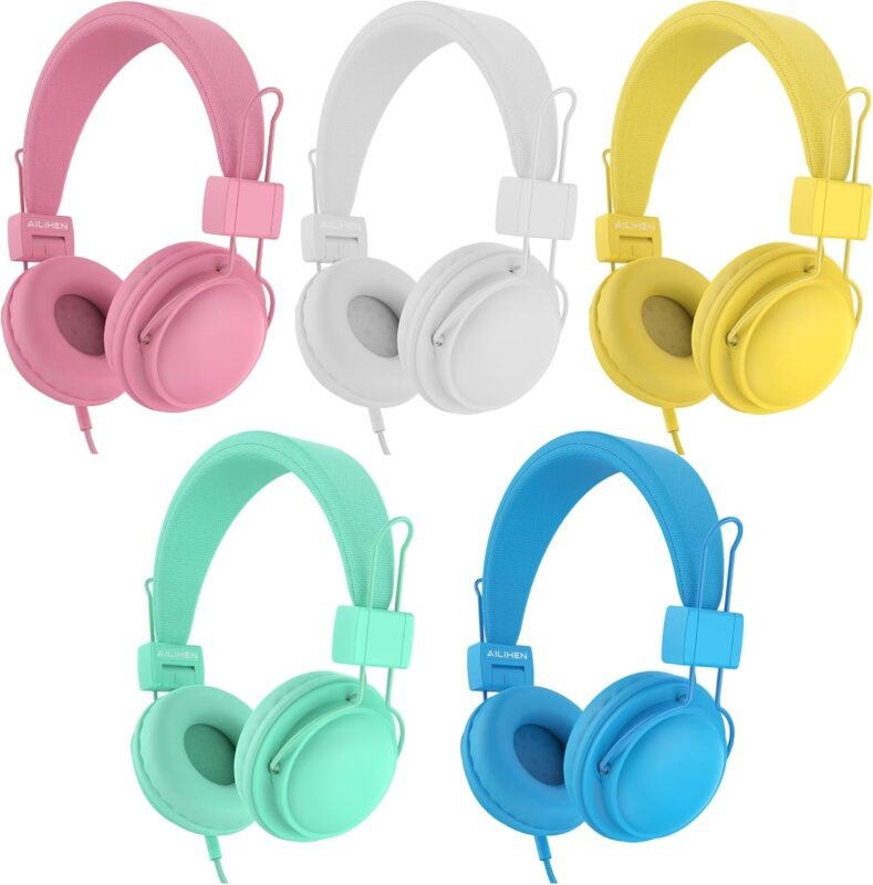 AILIHEN Kids Headphones Wired Bulk 5-Pack for K-12th Grade, School & Classroom, with Microphone…