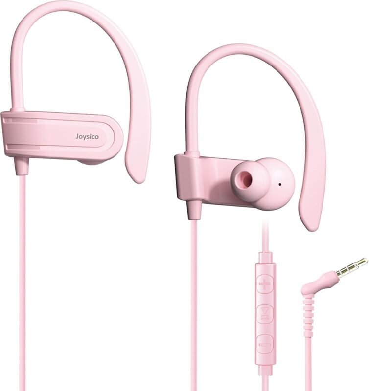Wired Over Ear Earbuds with Microphone Volume Control Ear Hook and Case, Sweatproof Sport Earph…