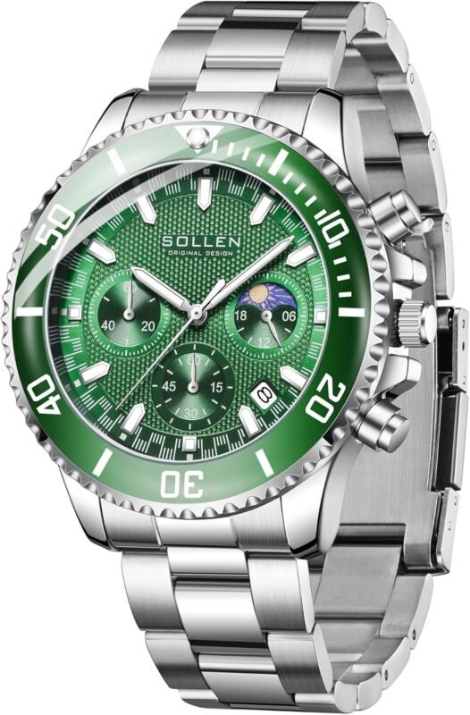 07 Feb سماعات محمولة SOLLEN Green Dial Chronograph Watch for Men, Analog Classic Quartz Wristwatch with Date & Moon Phase, 3ATM Waterproof Stainless Steel Dress Watch for Formal, Casual & Daily Use, Luxury Gift for Men Posted by b.bhipksa 2026-02-07 0 Continue reading