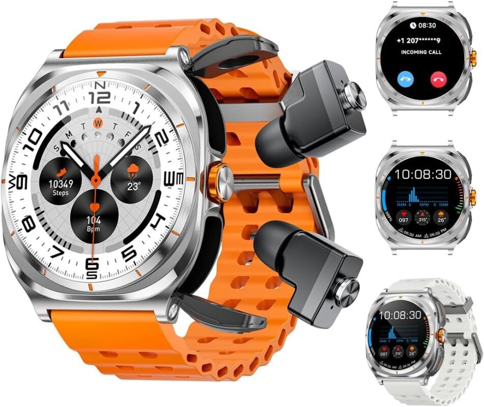 Smart Watch with Earbuds Inside,Answer Calls and Listen to Music, Fitness Tracking Watches, More Than 100 Sports Modes to Choose from, Breathable Double Strap,DIY Watch Faces for Men Dad Husband
