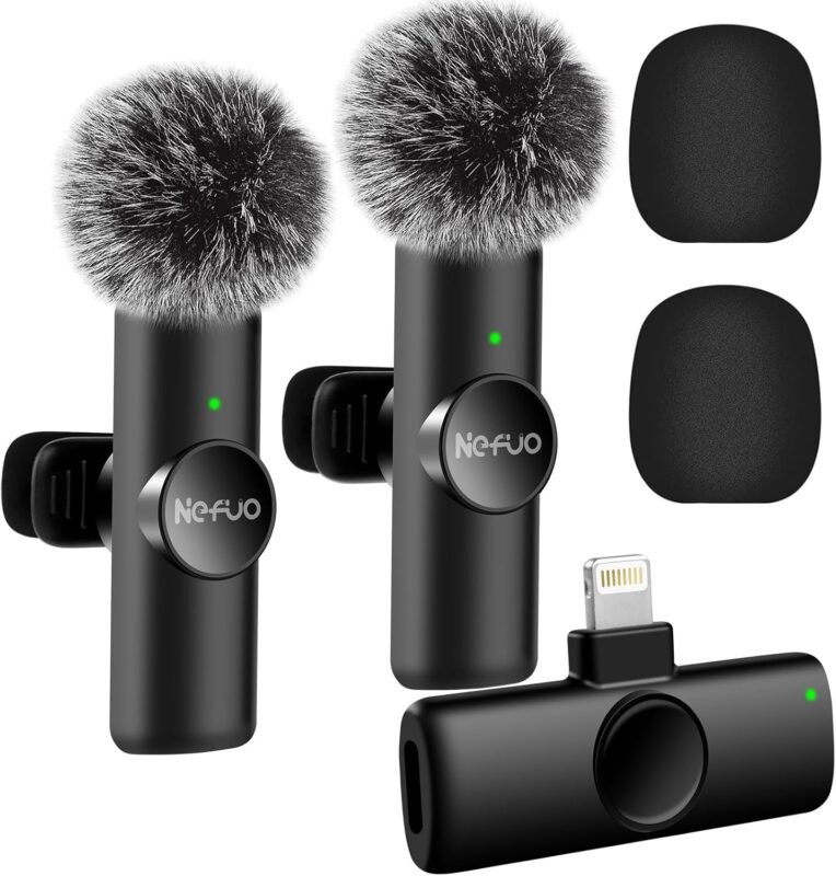 Professional Wireless Microphone for iPhone, iPad, 2pcs Wireless Microphones with Crystal Clear Sound Quality, Mini Microphone Plug-Play for Interview Video Podcast Vlog YouTube Tiktok
