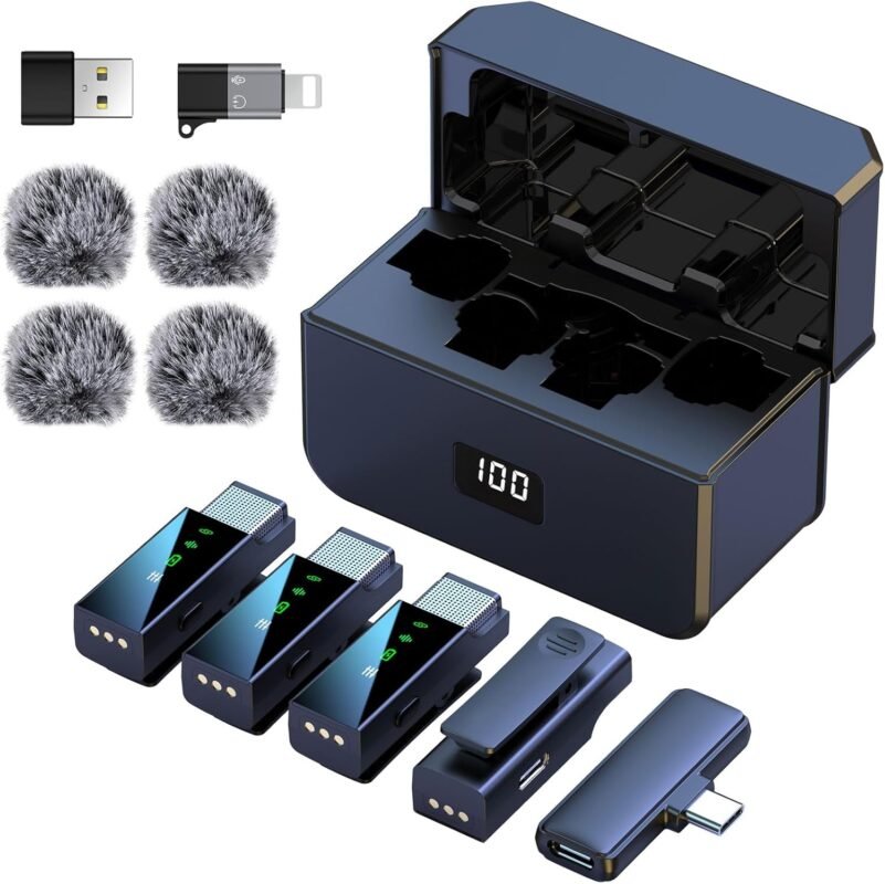 PQRQP 3 in 1 Professional Wireless Lavalier Microphone for iPhone, Android, Camera, Wireless Microphones, Mini Microphone, Crystal Clear Sound Quality for Recording, Live Streaming, Microphone Clips