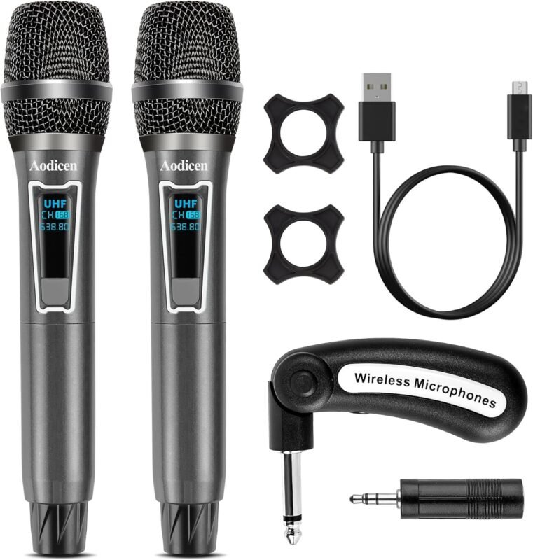 Wireless Microphones System with 2 X 100 Channels Cordless Handheld Microphone, 328 FT UHF Range, Mics with Stable Signal Transmission for Karaoke Singing Party Church Wedding PA Speaker