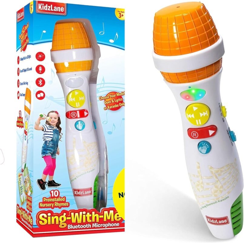 Kidzlane Bluetooth Microphone for Kids – Toy Karaoke Microphone with Voice Changer and 10 Nursery Rhymes for Ages 3 and Up