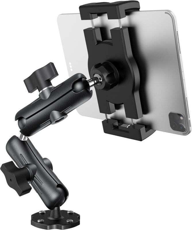 Heavy Duty Tablet Mount for Truck & Vehicle, Drill Base Tablet Holder for Truck with Aluminum Arm, Compatible with 4.7″-12.9″ Tablets/iPad/Phones, iPad Truck Mount for Dashboard, Walls, Boat