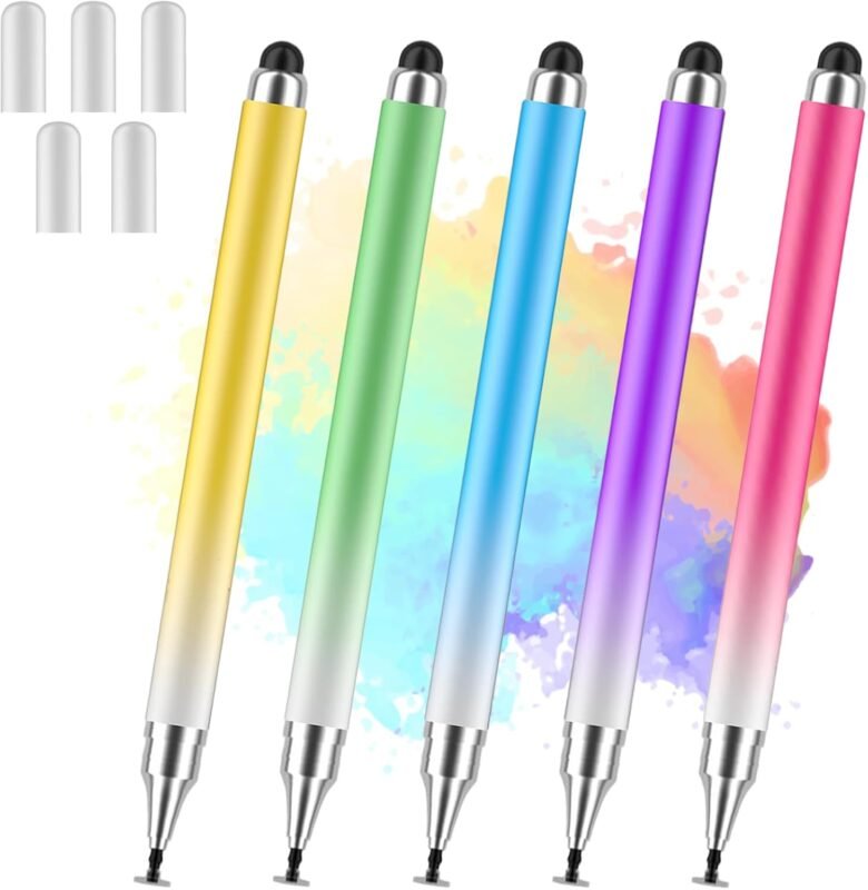 Stylus Pens for Touch Screens, Universal 2 in 1 Stylus Pen for iPad Compatible with iPhone, iPad, Android, Microsoft Tablets, Phones, Surface,[5 Pack]-Blue,Green,Pink,Purple,Yellow