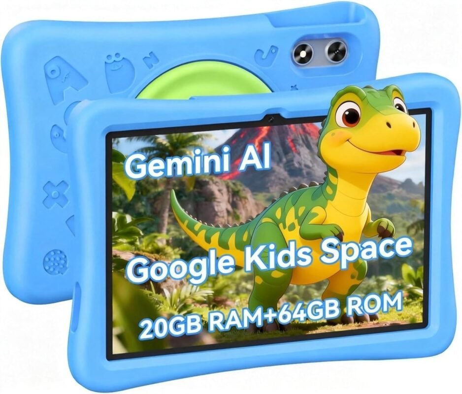 Kids Tablet 10 Inch, Android Tablets Toddler Tablet with Parental Controls, 20GB Ram 64GB ROM 1TB Expandable, Dual Camera,6000mah WiFi 6, Shockproof Eva Case Blue