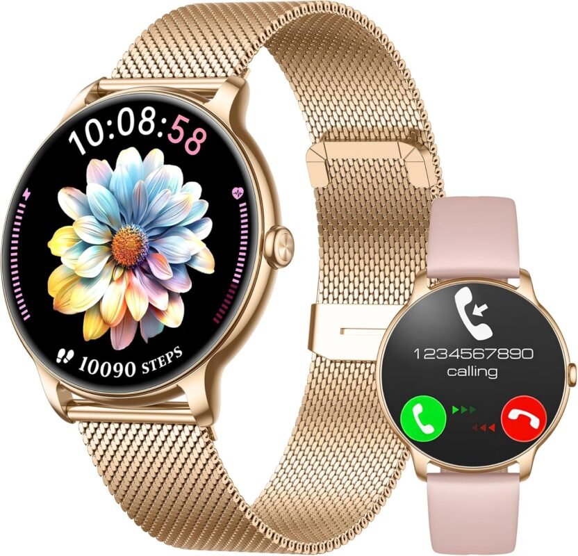 Smart Watch for Women, Make/Answer Call, 43mm Large Face 1.32″ AMOLED Screen, Fitness Tracker