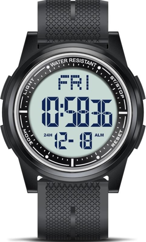 Beeasy Digital Watch Waterproof with Stopwatch Alarm Countdown Dual Time, Ultra-Thin Super