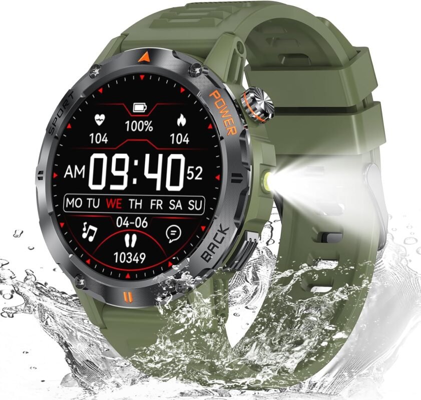2026 Military Smart Watches for Men – Compass & Flashlight – 2.01” HD IP68 Waterproof Smart