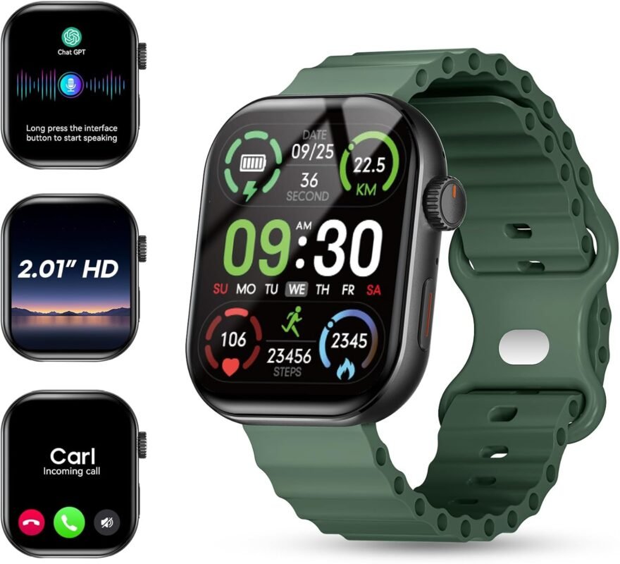 AI Smart Watch with ChatGPT Bluetooth Calling, App AI Dial 2.01″ Fitness Tracker, 100+ Modes,