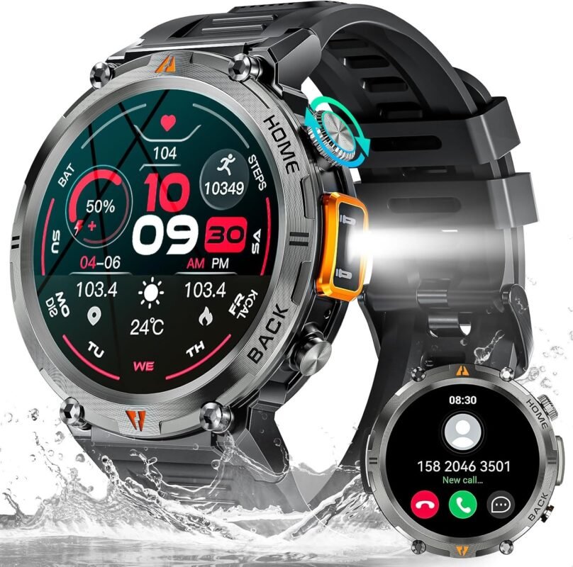 Smart Watch for Men- Bluetooth Call, 2025 Military Waterproof Fitness Sleep Tracker Watch with