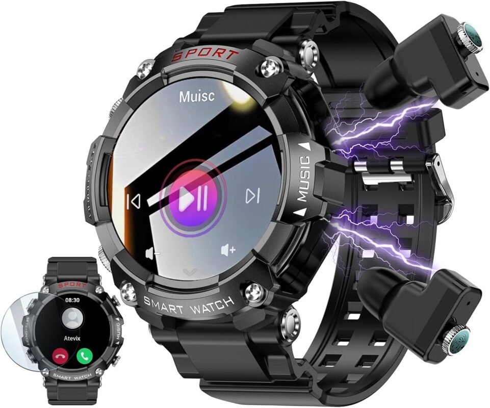 Smart Watch with Earbuds for Men, Bluetooth Calling can Answer and Make Calls,Local Music,