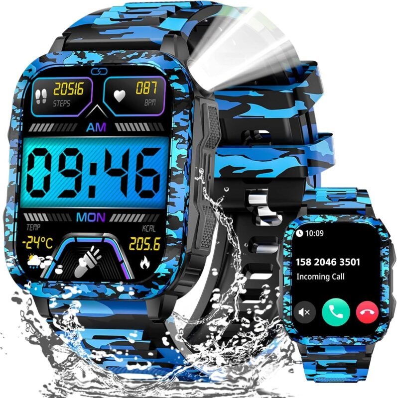 Military Smart Watches for Men (Make/Answer Call) with LED Flashlight 1.96″ Screen 430mAh