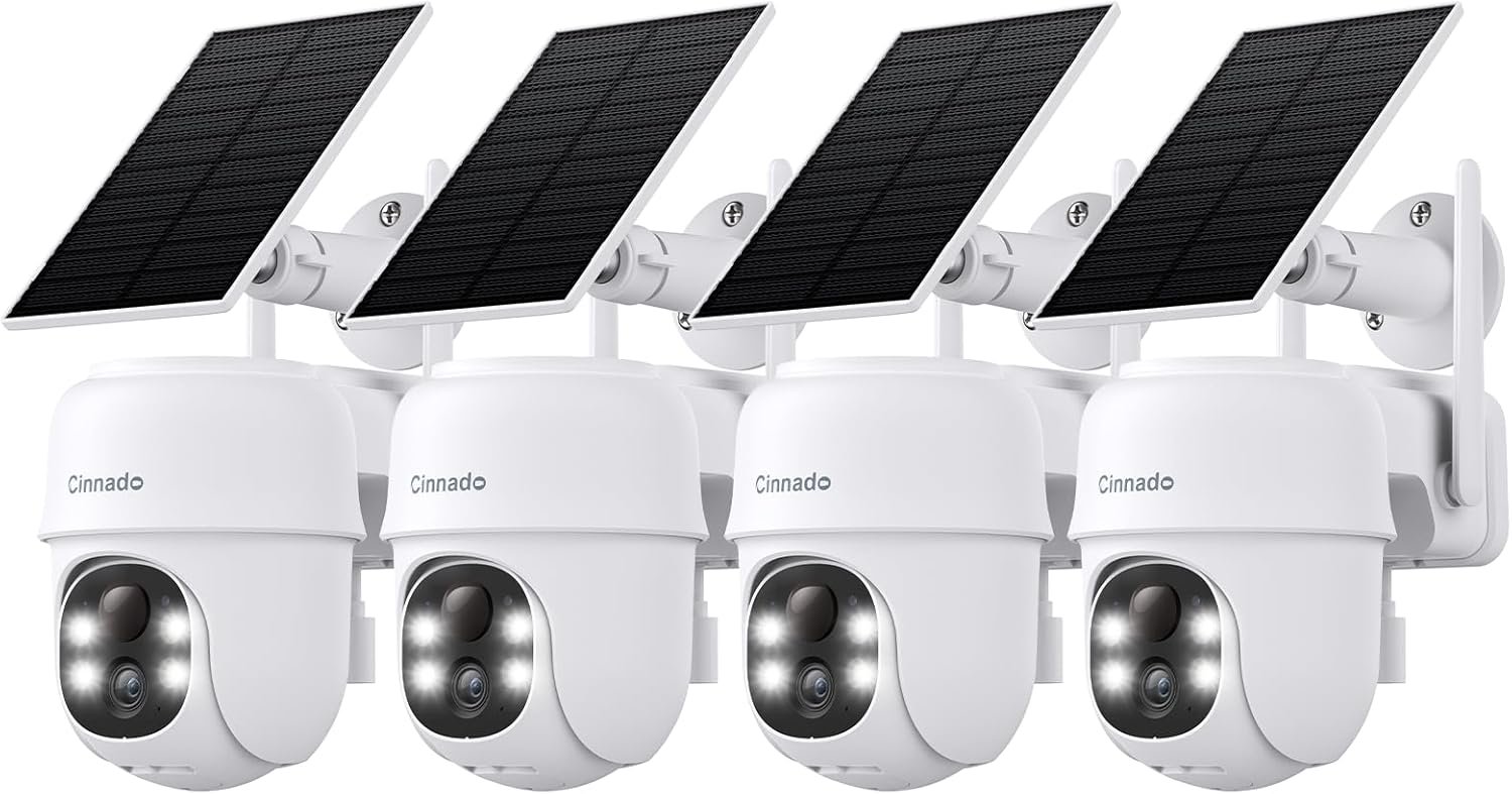 Cinnado 2K Cameras for Home Security-2.4G WiFi Outdoor Camera Wireless Solar/Battery Powered, 360° Viewing, Human Detection, Color Night Vision, Cloud/SD Storage B6 (B6-White-4pack-2.4G)