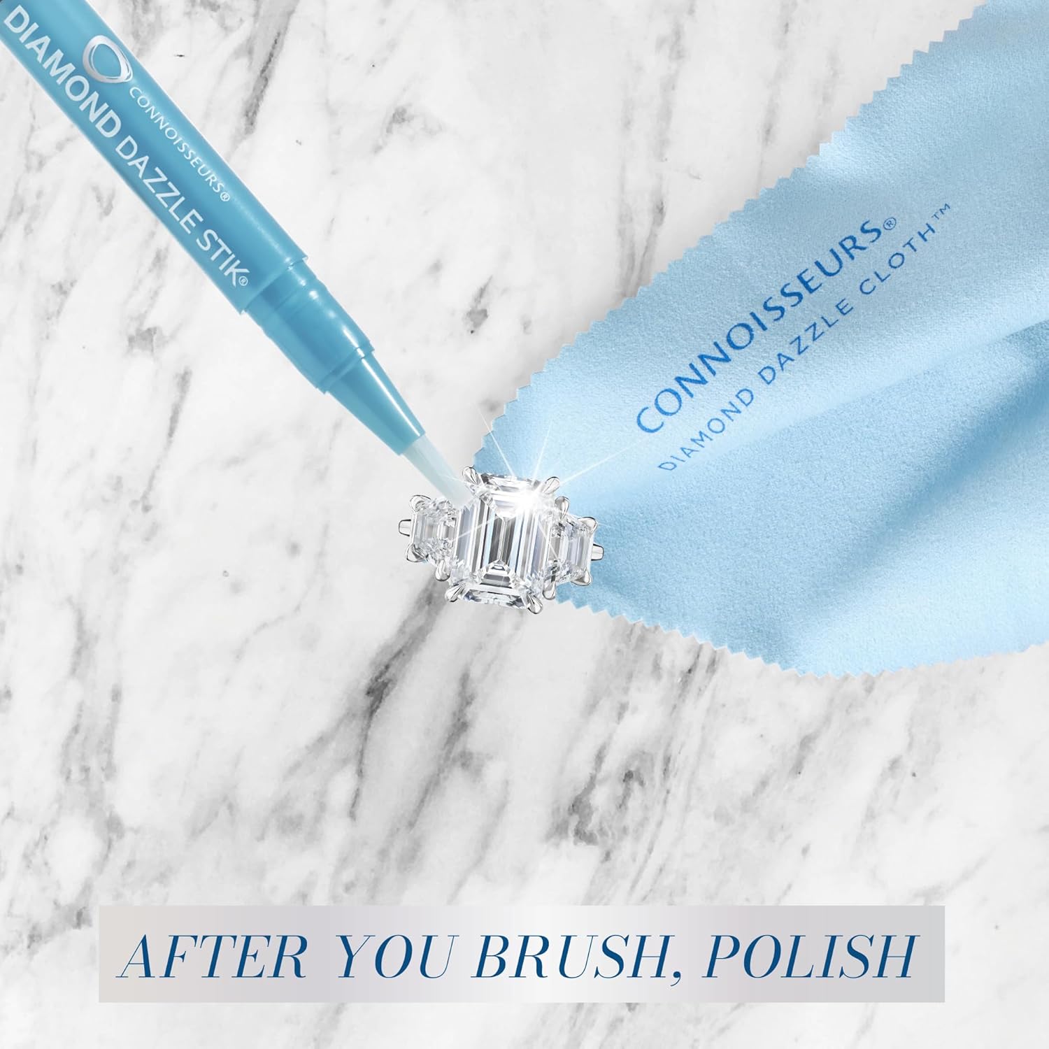 Are your diamonds losing their sparkling glimmer? Connoisseurs Diamond Dazzle Stik makes cleaning diamonds and precious stones a breeze. Just Twist, Brush, & Dazzle! The miraculous jewelry cleaning liquid solution contains micro-fine cleansers and polishing agents that bring radiance and luster to diamonds. Diamond Dazzle Stik formula contains a special polymer that fills tiny scratches in settings. It is formulated to clean diamonds, precious stones, and platinum & gold jewelry settings. The Diamond Dazzle Stik flawlessly cleans diamond rings, diamond earrings, diamond bracelets, and diamond pendants and also great for cleaning lab created diamonds.The perfect accessory for couples jewelry, The Diamond Dazzle Stik makes the ideal engagement gift! Buy this pocket-sized accessory, and keep your precious stones always shimmering!