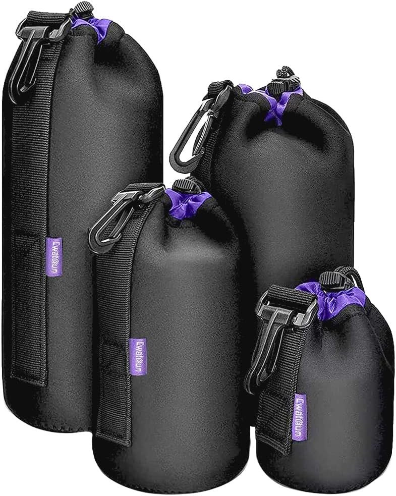 Cwatcun 4 Pack Lens Pouch Set, Camera Lens Case Bag with Thick Protective Neoprene, for Canon Nikon Sony Pentax Olympus Panasonic Fuji Sigma DSLR SLR Camera Lens (Size Small, Medium, Large, X Large)