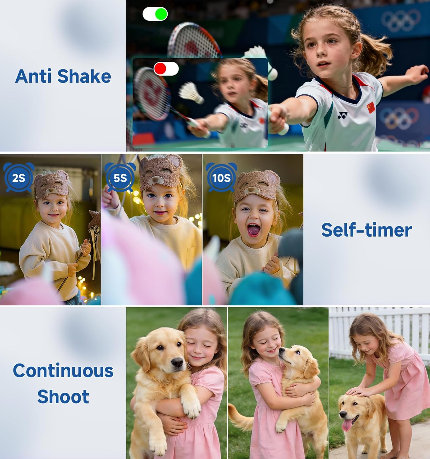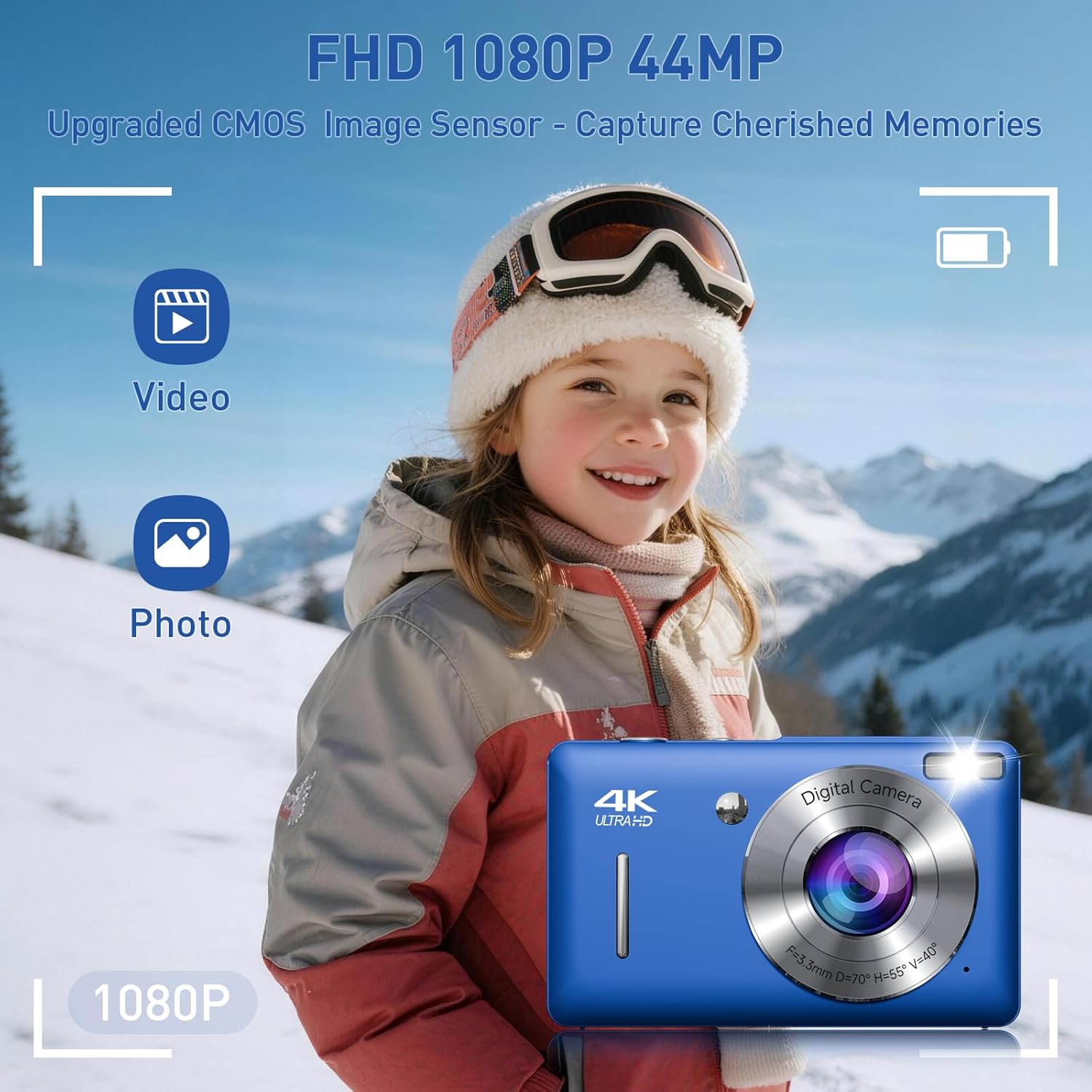 High-clarity FHD 1080P Videos and 44MP Photos: The digital camera for kids is equipped with a high-level CMOS Sensor, which helps to capture vivid clear 44MP Images and record stable smooth FHD 1080P resolution videos. Ideal for Christmas or birthday gift camera for kids to cultivate their interest in photography.