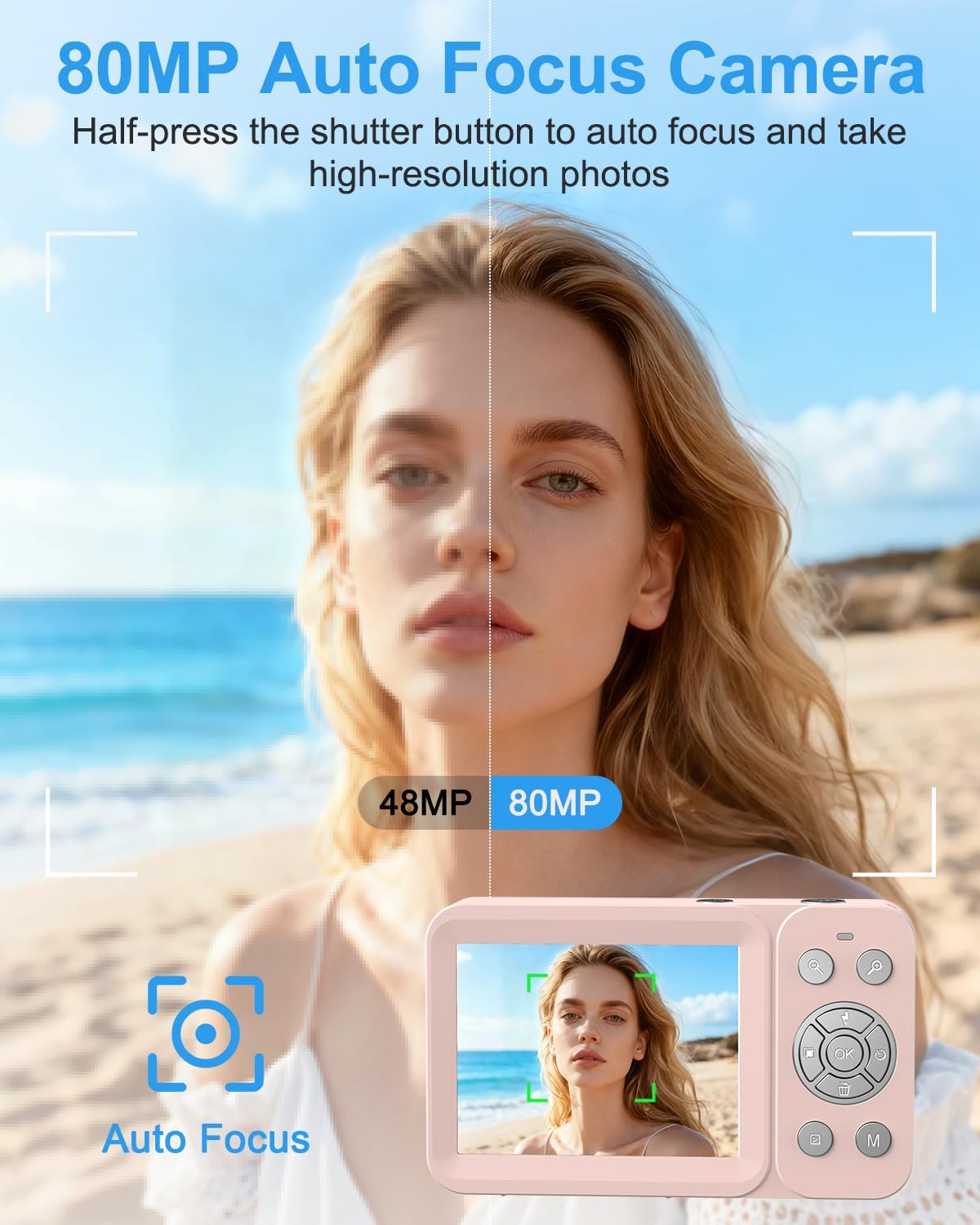 Stunning 5K/80MP Clarity – Stop settling for smartphone compression. Engineered with an advanced CMOS sensor, this digital camera delivers true-to-life 5K Ultra HD video and 80-megapixel still photos. It preserves textures, colors, and light with lifelike accuracy. Whether capturing spontaneous family moments, filming travel adventures, or shooting in low light with fill flash, its rapid autofocus ensures crisp results. It’s more than a camera; it’s your tool to turn vlogs into wall art.