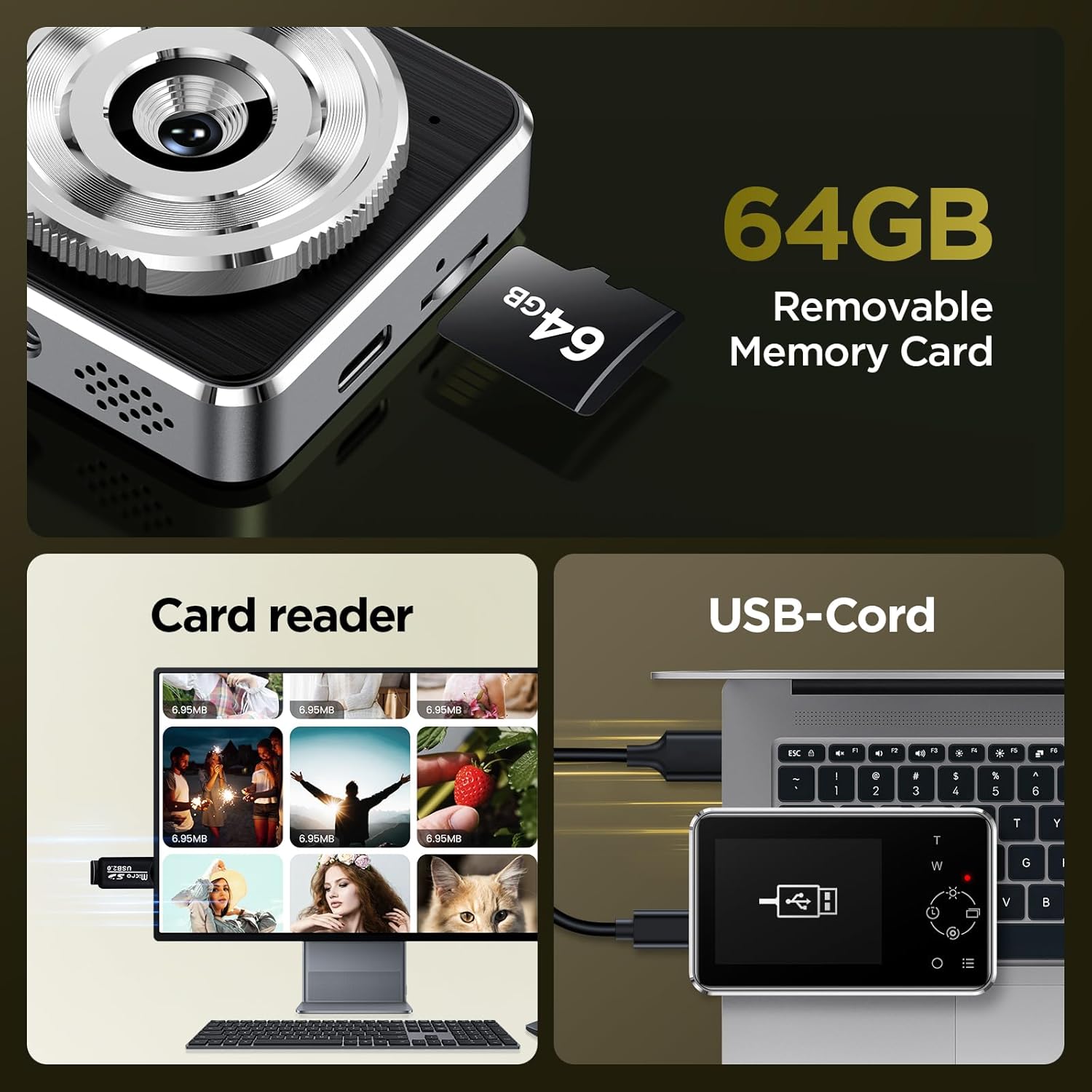 [All-in-One Ki] Includes 64GB SD card, rechargeable battery, lanyard, camera storage bag—ready to use out of the box. Perfect gift for teens/adults!