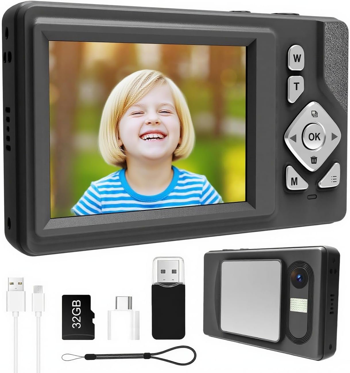 Drag-and-Drop Sharing, No Apps Needed Use the included card reader + adapter to drag photos/videos straight to your laptop. Share family party pics in seconds, or edit vacation videos on the fly — even your grandma could do it.Charge Anywhere, Anytime USB-powered means you can recharge from your laptop, power bank, or even your car. Never miss a shot because of a dead battery — keep capturing at the beach, campground, or coffee shop.32GB Ready-to-Shoot Storage No waiting! The included 32GB card holds thousands of photos or hours of video. Unbox it, turn it on, and start shooting — zero setup, zero stress.