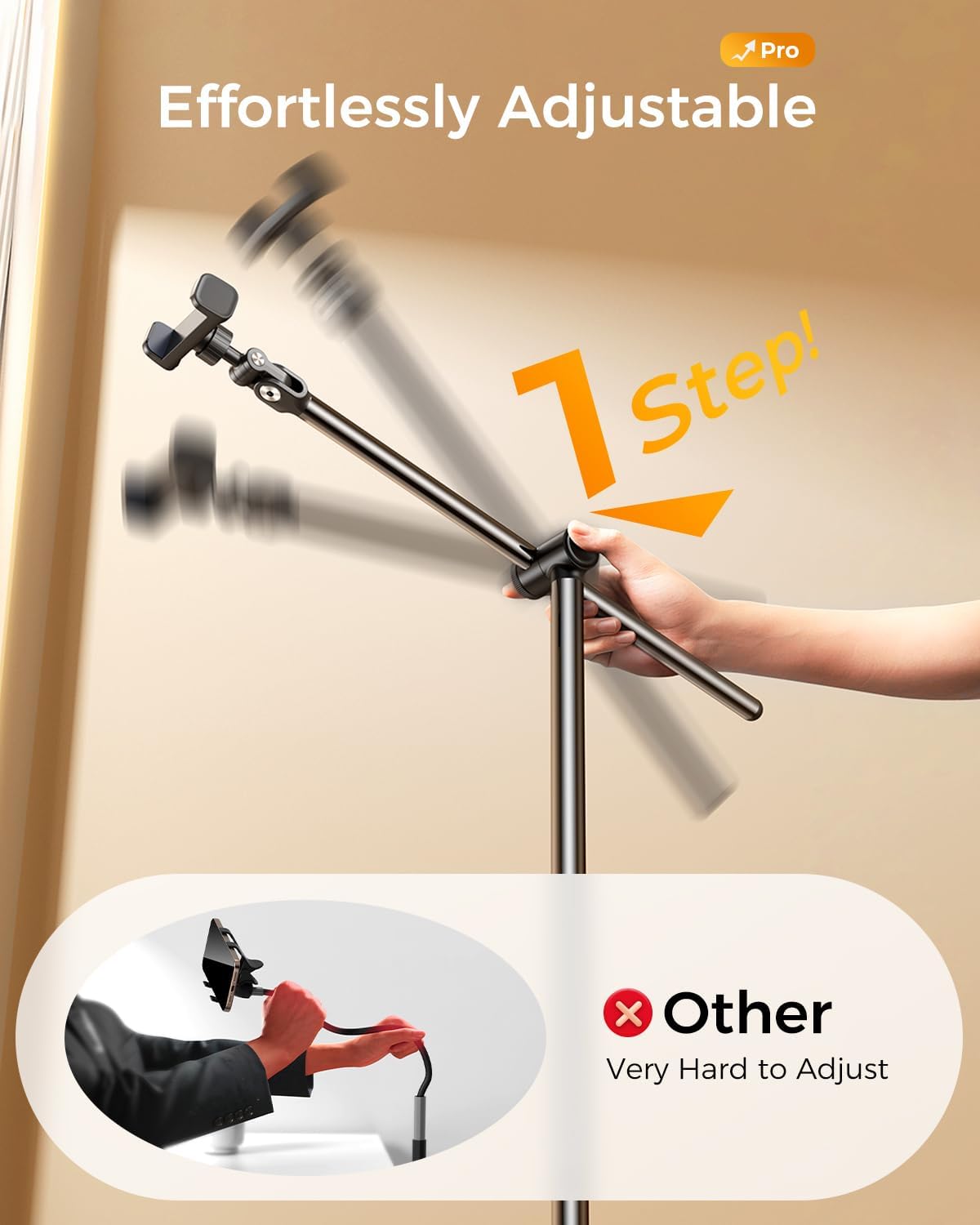 PROTECT YOUR SETTINGS FROM DAMAGE: Our tablet floor stand chuck is designed with silicone gasket, the enlarged and thickened anti-slip and anti-scratch silicone pads on the clamp can prevent tablets and cell phones from sliding and scratching. Durable material and high precision smooth surface can prevent the tablet stand floor holder from scratches and breakage after long time use.