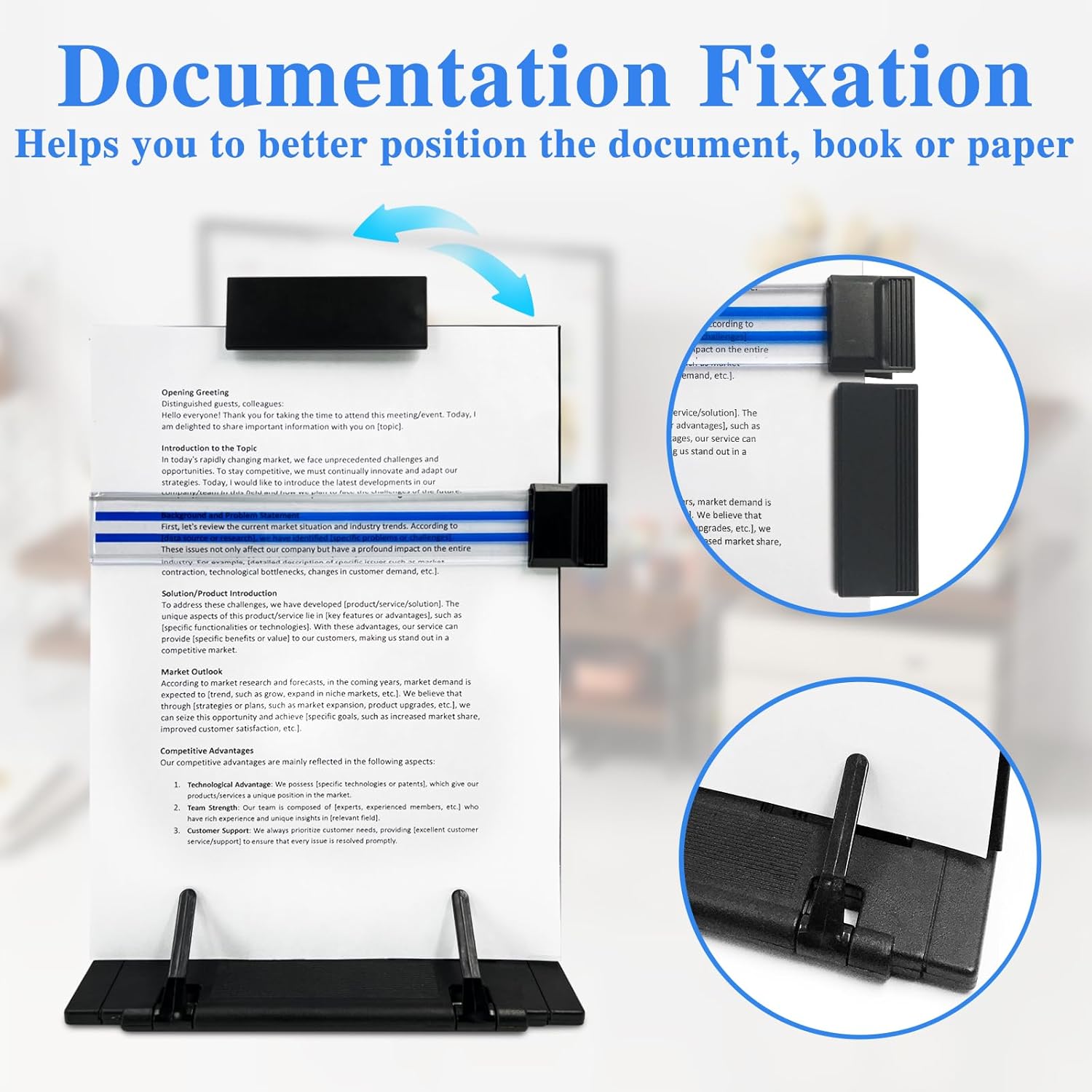 📄【Documentation Fixation】The top is equipped with clip that can be moved to the desired position as needed to ensure that the document does not slide. The bottom has 2 page support clips that hold down the bottom end of the manuscript to keep the reader reading and writing smoothly.