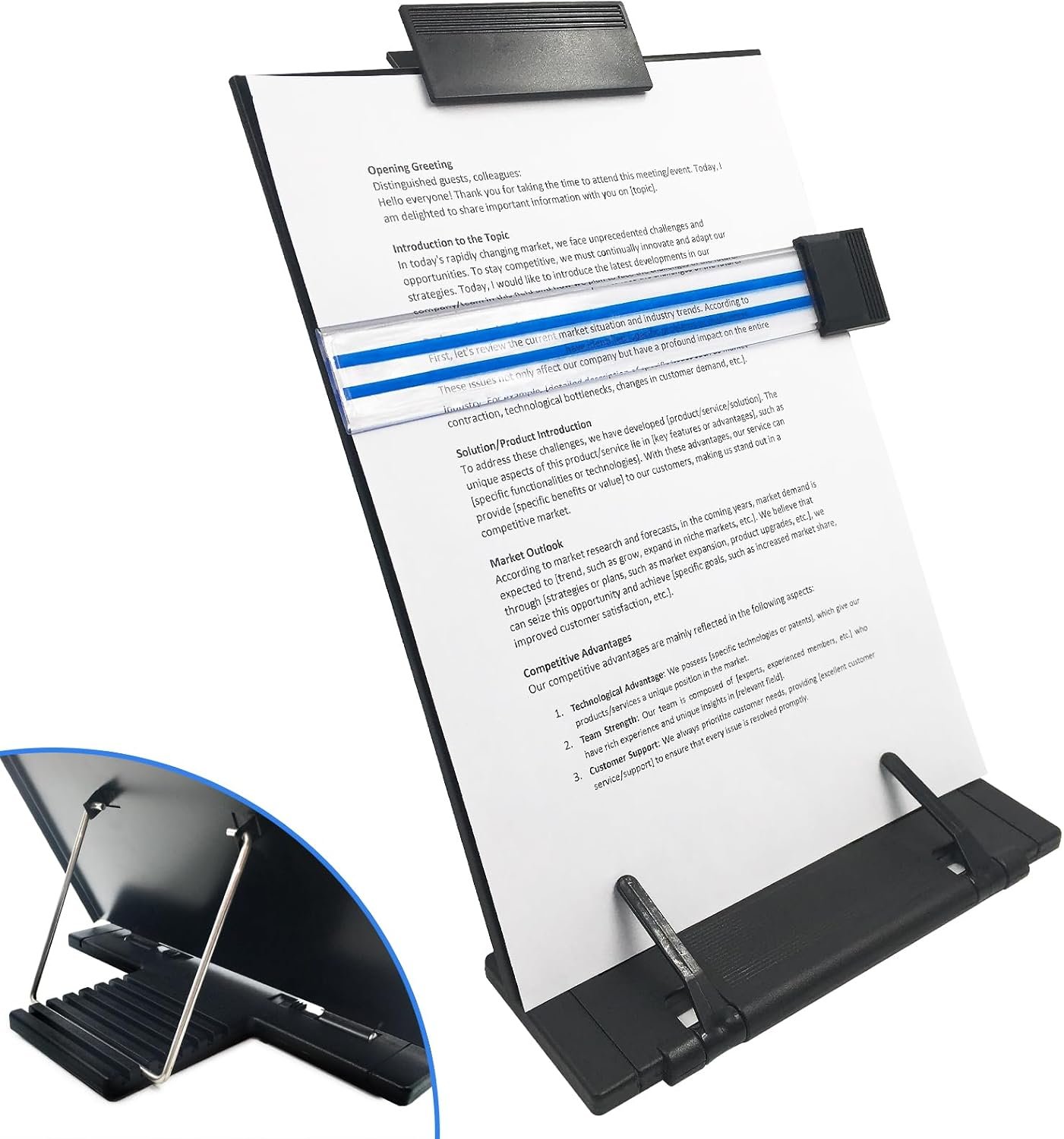 📄【Documentation Fixation】The top is equipped with clip that can be moved to the desired position as needed to ensure that the document does not slide. The bottom has 2 page support clips that hold down the bottom end of the manuscript to keep the reader reading and writing smoothly.