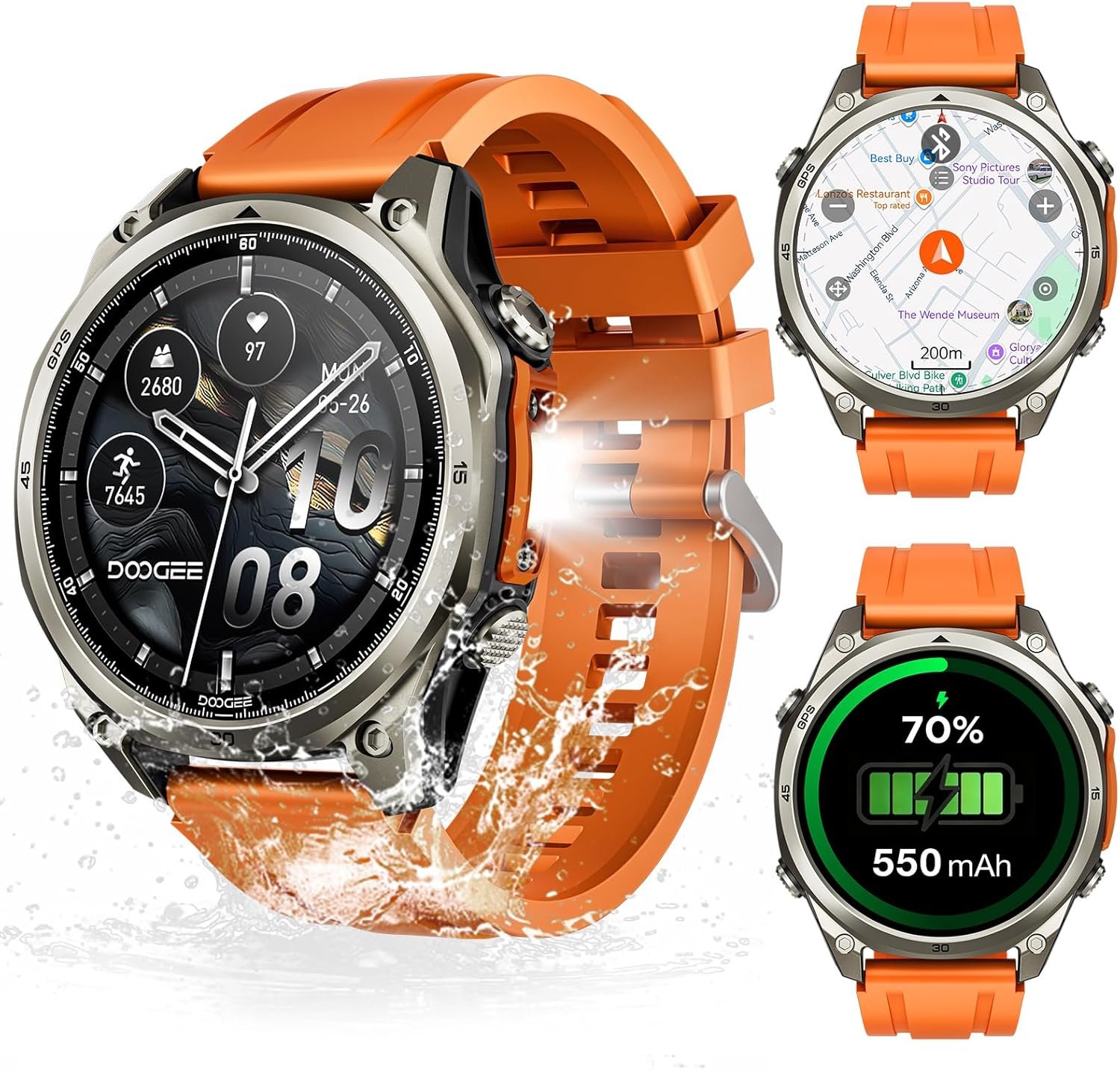 DOOGEE Anywise W1 Pro Mens Smart Watch, 5ATM Dual-Band GPS Offline Maps,1.43” Fitness
