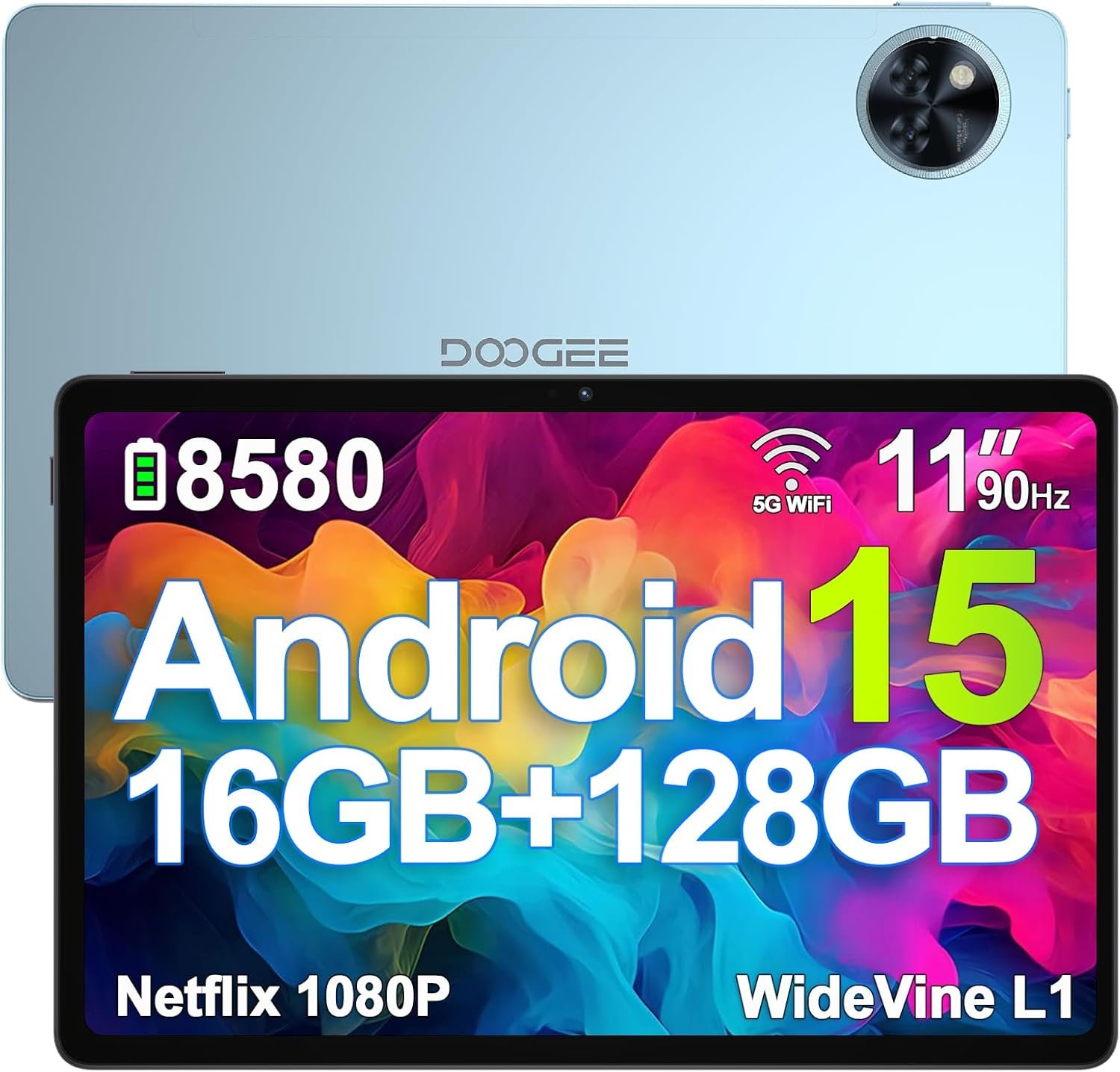 DOOGEE U11 (2026) 11” inch Android Tablet,16GB+128GB/2TB TF Octa-Core,Android 15 Tablet, 90Hz Display, 8580mAh,1080P,Bluetooth 5.0+5G WiFi, 13MP+5MP, Face ID,Metal Body-Black