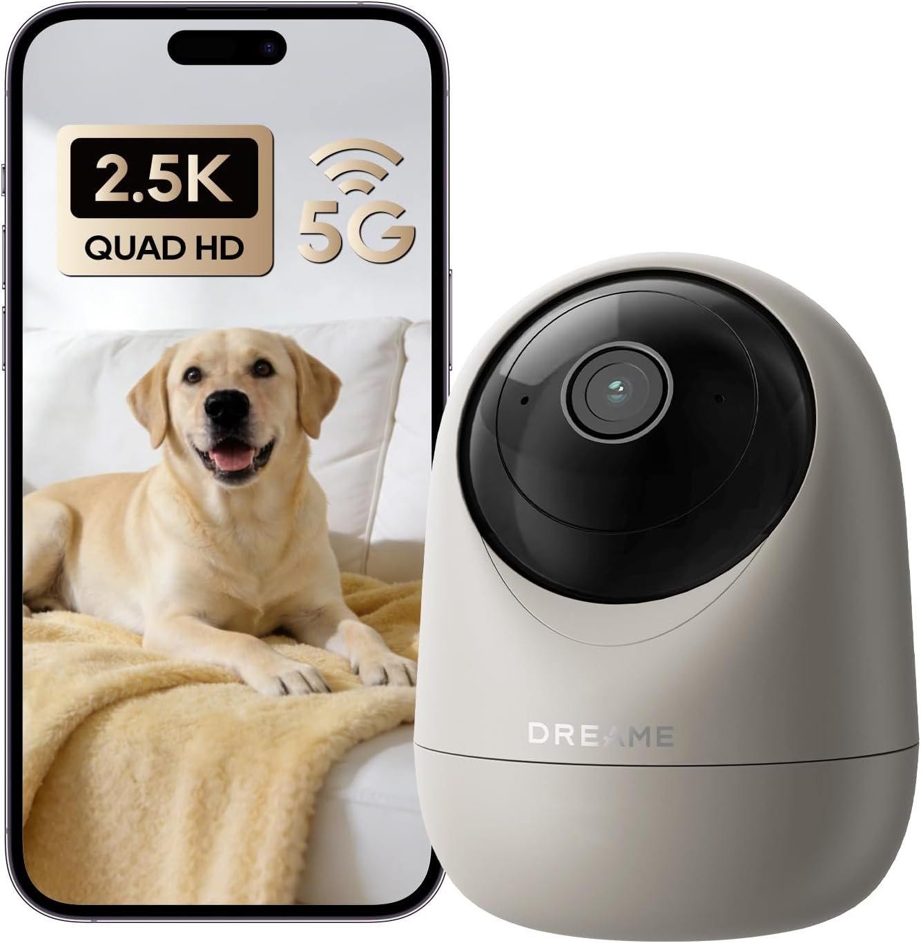 DREAME 2.5K Pet Dog Camera, Indoor Security Camera, Dual-Band 5G/2.4G Wi-Fi, Auto-Tracking, 360° Pan-Tilt, Cloud & 256GB SD Storage, 2-Way Audio, Physical Privacy Mode, Work with Alexa & Google, Grey