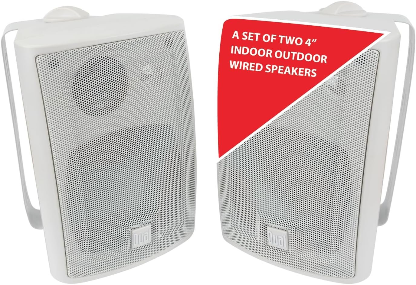 Dual Electronics LU43PW 4″ 3-Way High Performance Outdoor Indoor Wired Speakers | Effortless Set Up | Home, Pool, Patio, Garage Use | Weather Resistant | Expansive Stereo Sound Coverage | White