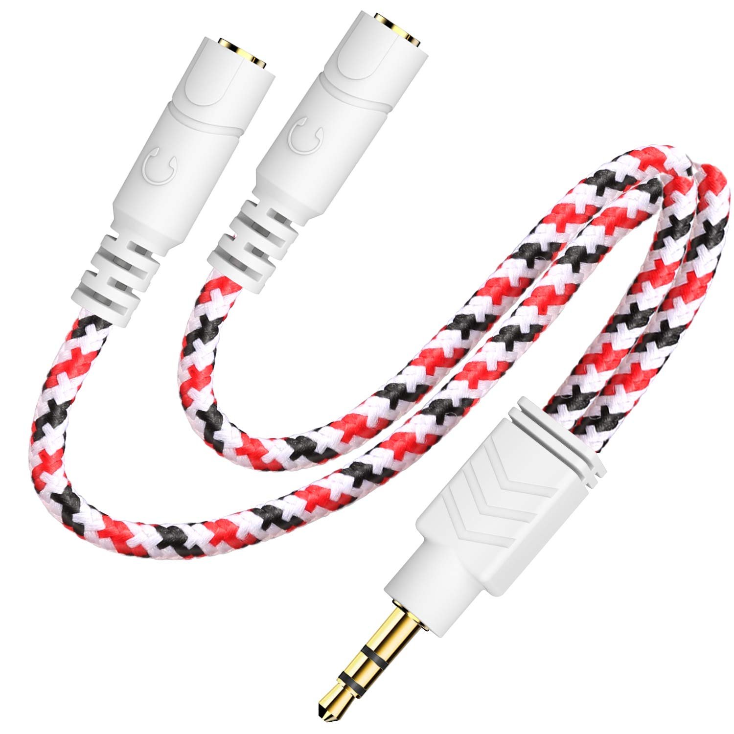 DUKABEL Headphone Splitter, 3.5mm Splitter Cable for Headset [Fine Braided & Gold Plated] Stereo Audio Y Cable AUX Splitter – Compatible for iOS, Android, Smartphones, Tablets & More – (0.85ft/26cm)