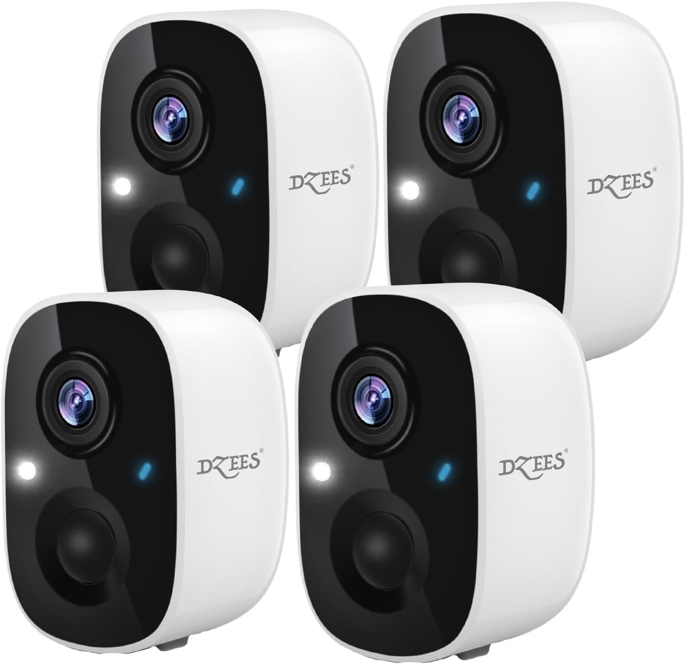 Dzees 2K Security Cameras Wireless Outdoor, Battery Powered AI Motion Detection Spotlight Siren Alarm WiFi Surveillance Indoor Home Camera, Color Night Vision, 2 Way Audio, SD/Cloud IP66, 4 Pack