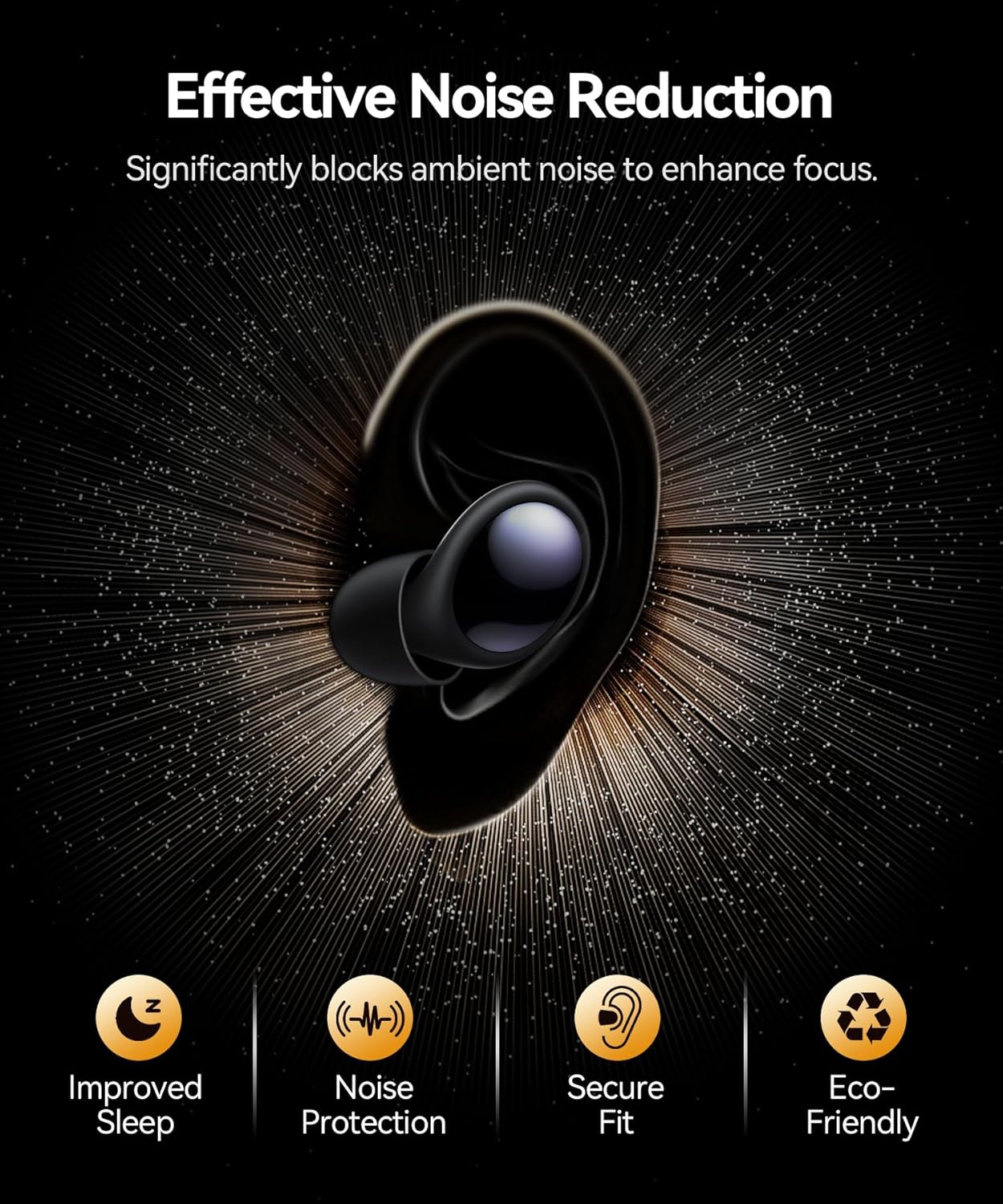 45dB Superior Noise Reduction: Ear plugs use advanced acoustic filters to block disruptive noise (as snoring or talk) for deep sleep, while maintaining clear sound during concerts or holiday events by reducing noise without distortion. Ear plugs for sleeping feature a multi-layer sound insulation design,combining high-density and sound insulation technology to provide 45dB hearing protection, ensuring safety without affecting sound quality. Ear plugs are perfect for side sleepers & concert fans