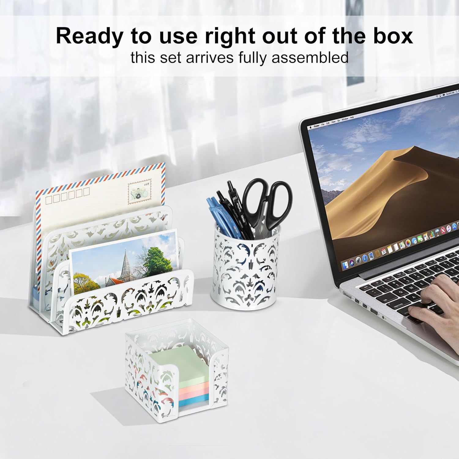 3 in 1 Office Supplies for Desk: The desk accessories set includes 1x mail organizer, 1x pencil holder and 1x sticky notepad holder. Our office supplies for desk is a great gift for holiday Christmas gifts, birthday gifts, party gifts, back to school gifts.