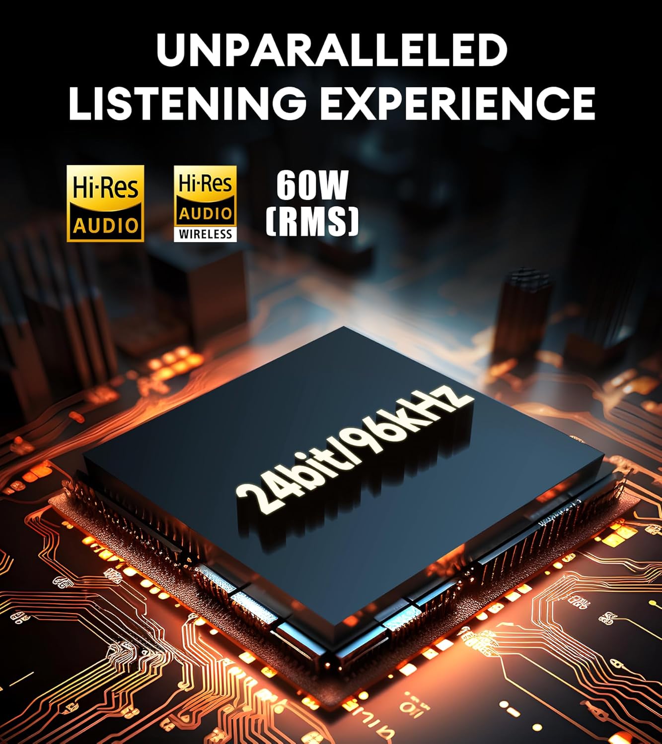 [High Resolution Audio] : Experience pristine audio with our high-res 24bit/96kHz support. Enjoy precise sound amplification and dynamic range control with Class-D amplifiers.