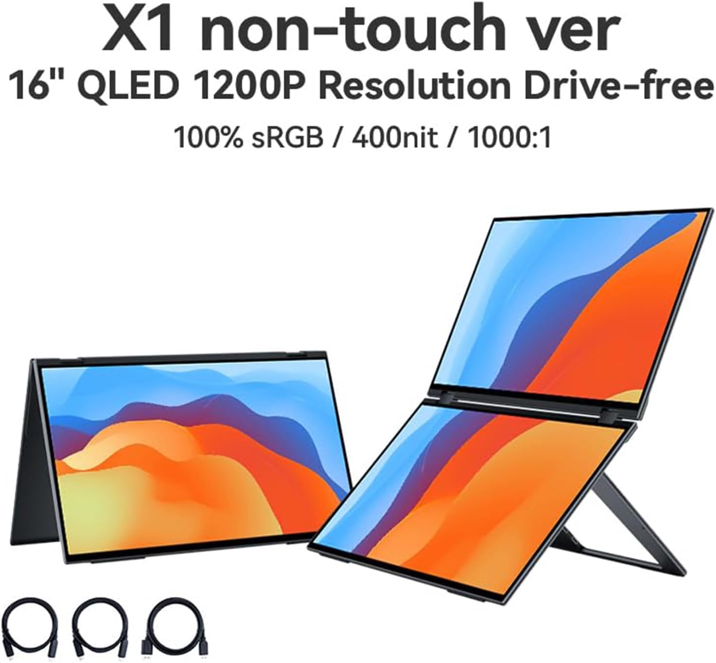 EHOMEWEI X1 Foldable Portable 1080P HD Dual Monitor, 16″*2 Laptop Expansion Screens 60Hz 1920 * 1200, 100DCI-P3 HDR for Working/Gaming/Travel, Phone/Switch/Windows MacOS